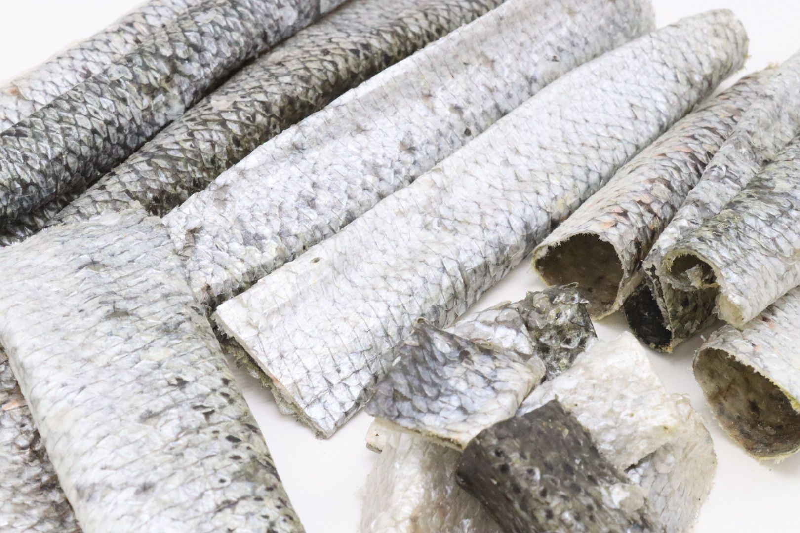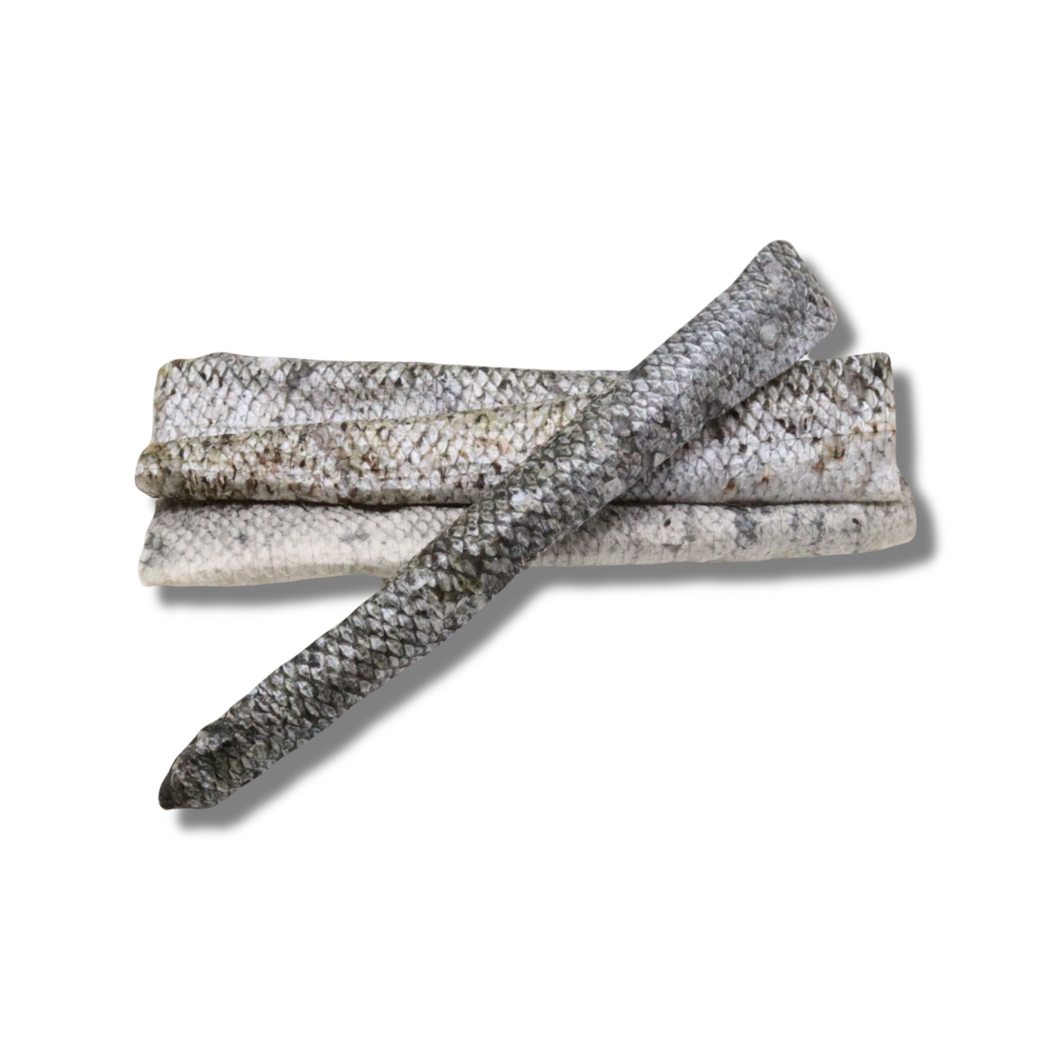 Deze zalmhuid is gemaakt van 100% zalmhuid en wordt langzaam luchtgedroogd voor een stevige, krokante structuur en een pure zalmsmaak. Voor bulkklanten wordt de zalmhuid standaard gezaagd op 20–25 cm, wat zorgt voor een consistent en goed verwerkbaar product. Dankzij de hoge smakelijkheid, stevige bite en natuurlijke uitstraling is dit ons best verkopende product en een vaste waarde binnen vrijwel elk vis-snackassortiment.