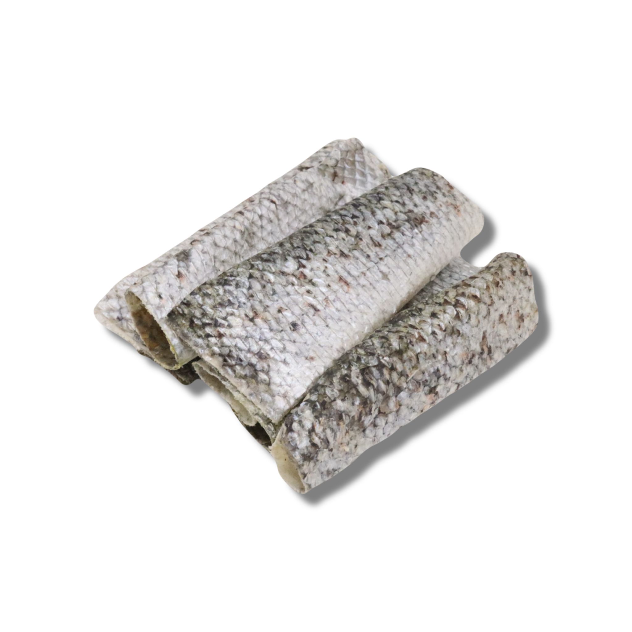 Deze korte zalmhuid is gemaakt van 100% zalmhuid en langzaam luchtgedroogd voor een stevige, krokante structuur en pure zalmsmaak. Door het compacte formaat is dit product bijzonder geschikt voor kleinere honden, oudere honden of als tussendoortje. Dankzij de hoge acceptatie en consistente kwaliteit is ook deze variant een vaste waarde binnen het vis-snackassortiment.
